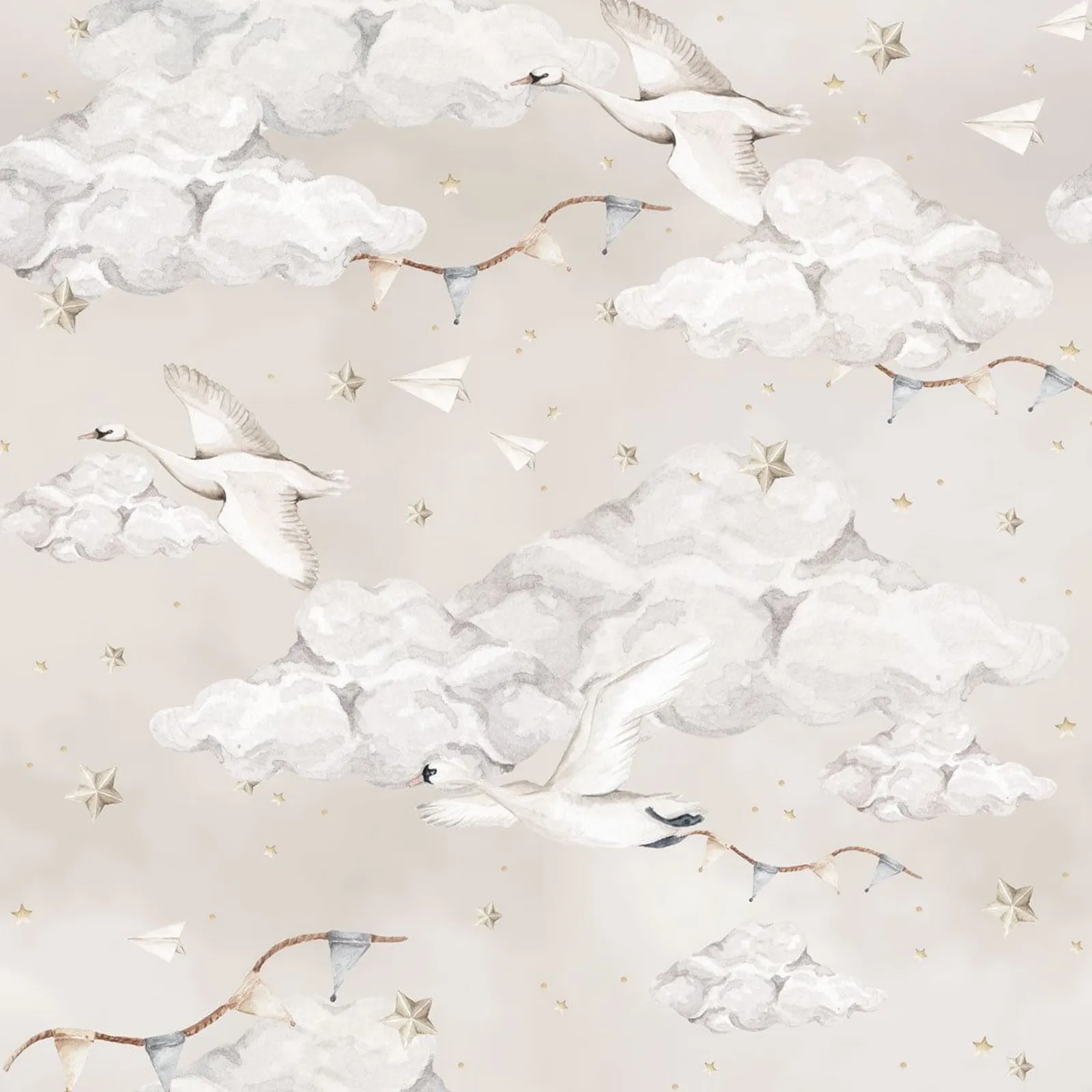 Dekornik Magic Swans Beige Kinderzimmer Tapete