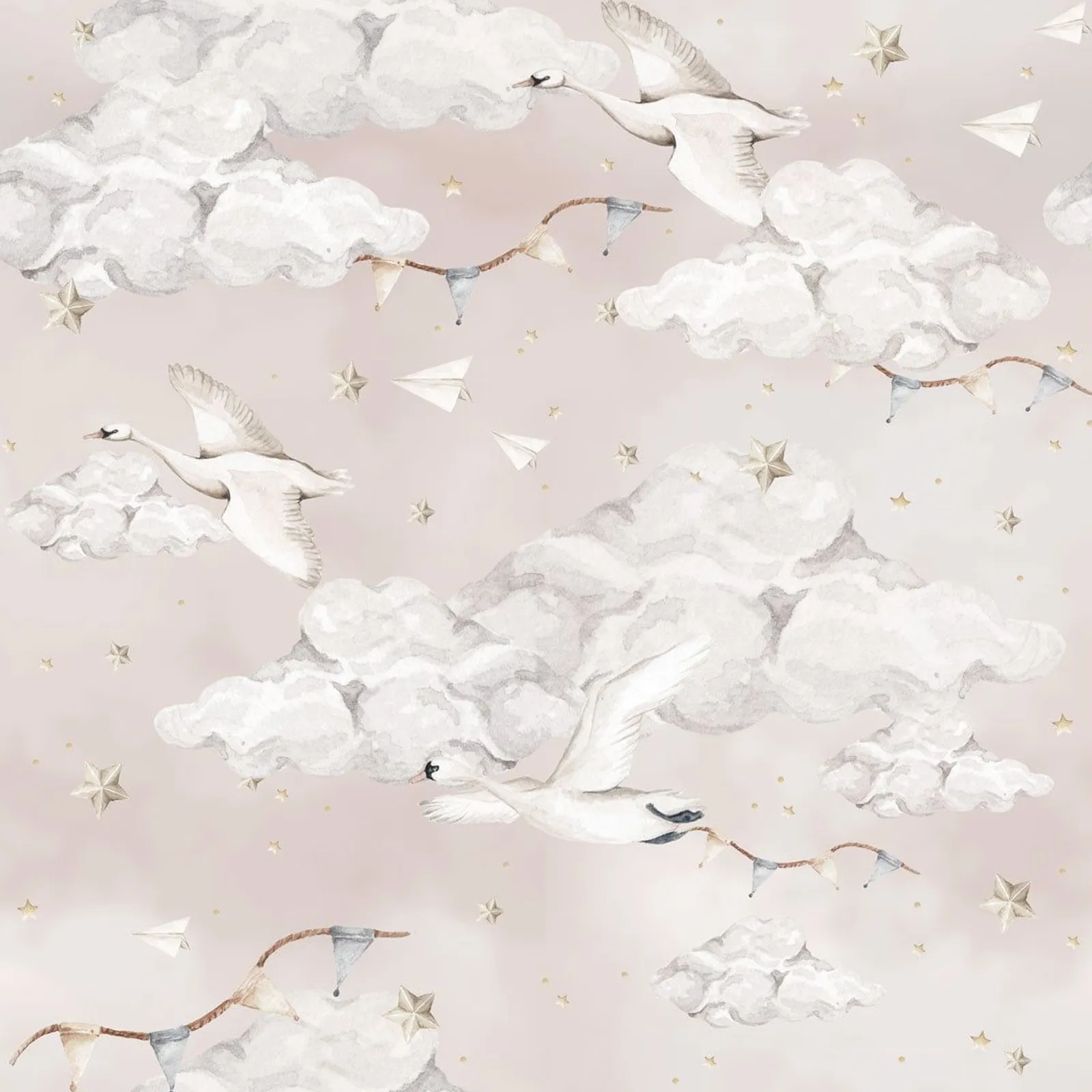 Dekornik Magic Swans Pink Kinderzimmer Tapete
