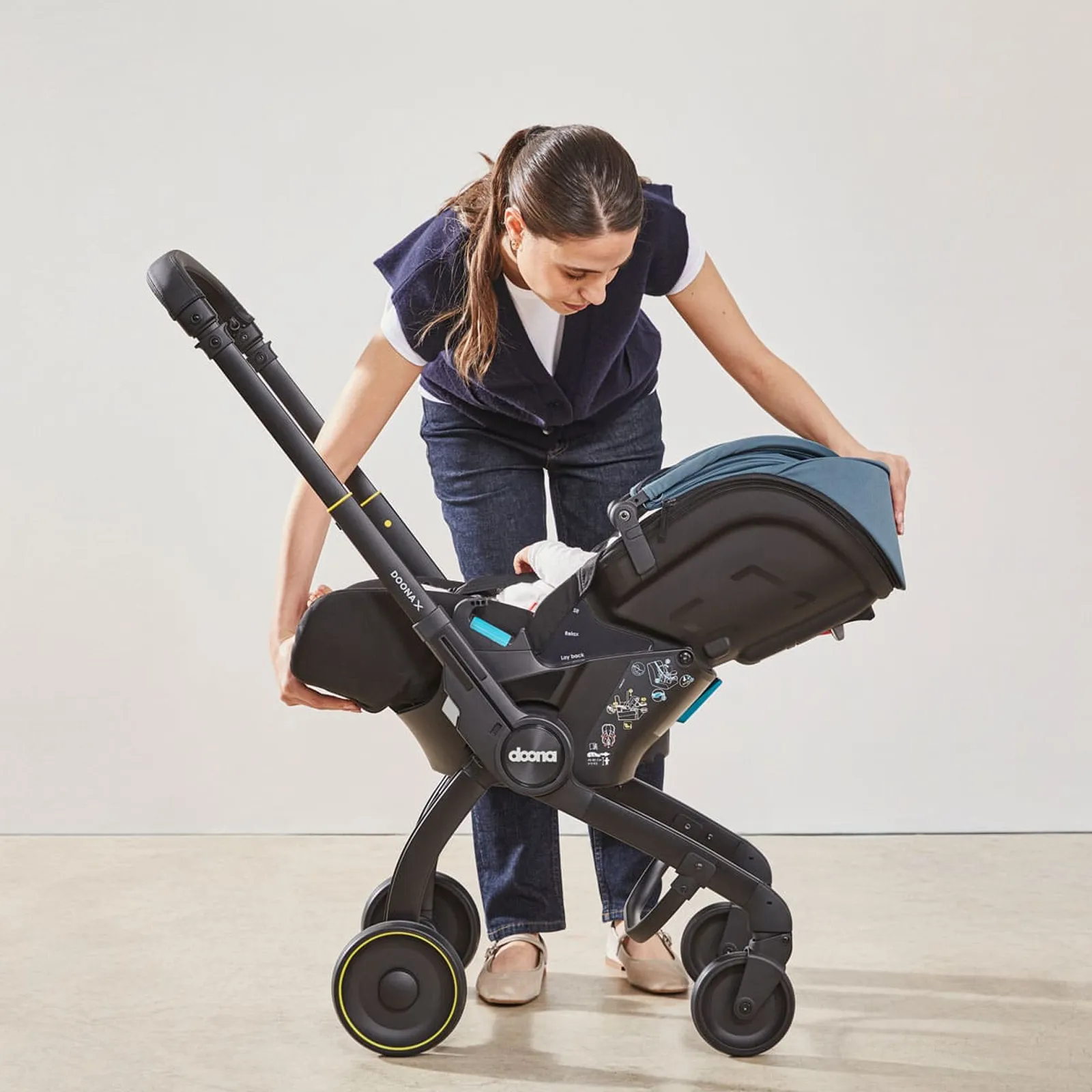 Gerade frischgebackene Eltern kennen das Problem: Wie bringe ich mein Baby sicher und bequem von A nach B, ohne verschiedene Systeme benutzen zu müssen? Die Doona X Babyschale kombiniert eine hochwertige Babyschale und einen vollwertigen Kinderwagen in einem einzigen System und macht deinen Alltag mit Baby zum Kinderspiel.